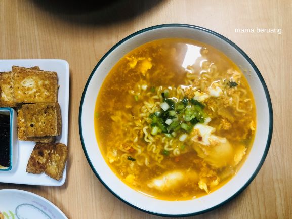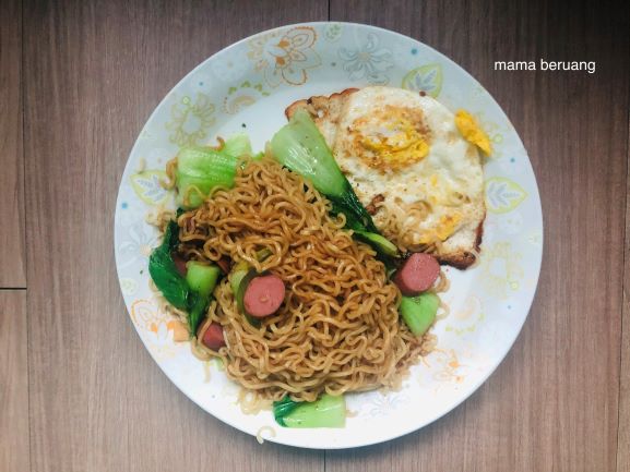 Makan siang biasanya left over atau apapun yang gampang dan ga perlu masak. Menunya bisa apa aja yang penting tinggal manasin. Nah kemarin kebetulan masih ada beberapa sisa mi instan bawa dari Indonesia yang ED nya udah dekat. Langsung deh diolah bareng bahan yang ada di rumah.