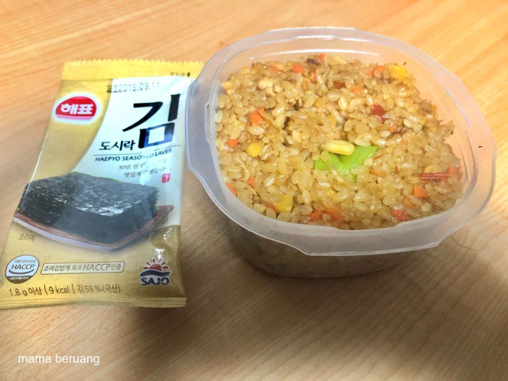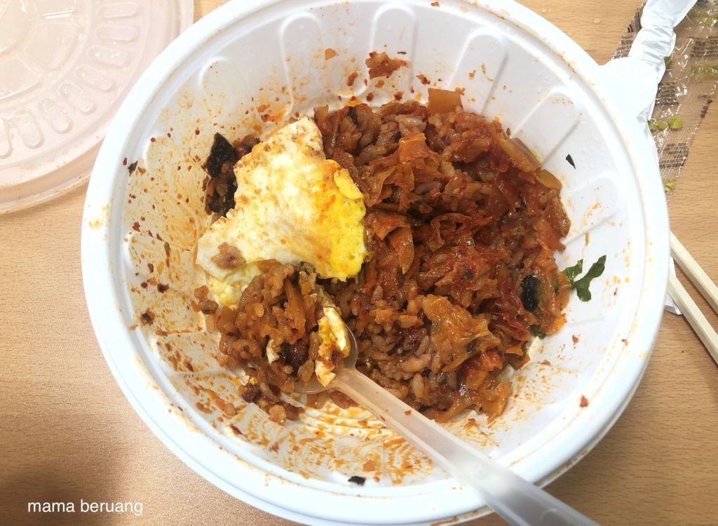 Gosh, ini hari yang melelahkan. Ada urusan di kantor polisi kelautan. Dari pagi sampai malem baru kelar alhasil nggak bisa masak dirumah. Siangnya suami masak ramen sendiri. Dia juga aku suruh belanja wakaka. Nah kalau aku sendiri karena kerjaannya nggak main-main, aku sampai skip lunch. Serasa mau pingsan saking kelaperan. Begitu kerjaan selesai, aku dikasih makan nasi goreng kimchi. Tadinya mau foto pas pertama mau makan, tapi ada bareng-bareng banyak orang. Pas mereka pergi aku baru bisa foto.