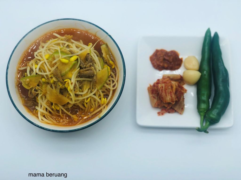 Menu hari ini gukbab yang isinya lobak, cambah kedelai dan daging sapi suwir. Pas banget cuaca dingin. Kecambah ini mesti jadi PR soalnya dia nggak tahan lama. Kalau nggak segera diolah bakalan cepet busuk terus akhirnya terbuang 😥 . Sedih kan kalo udah begitu. Biasanya sih aku beli kemasan 200-300gram aja dan cukup buat beberapa kali masak. Banchan hari ini cukup simple isinya cuma kimchi, kimchi bawang dan cabe timun dicocol ssamjang.
