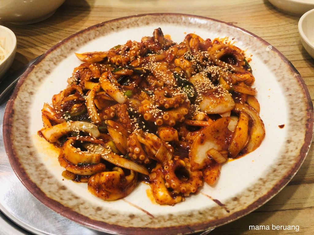 Hari ini jadwal kumpul sama temen. Kita lunch bareng menu gurita bumbu. Ini menu 3 orang ya. Per orang harganya 10,000 Won. Kita juga pesen seafood pancake. Rasanya agak hambar, tambahin garam sama lada dikit kayanya enak. Tapi karena makannya dicocol saus cukup okelah. Sepiring ini harganya 15,000 Won. Kenyang banget, dan ditraktir hihihi.