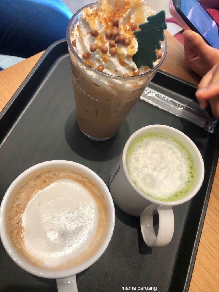 Abis makan siang kita ngopi di Twosome Place. yang mana semuanya deket rumah tinggal nyebrang aja (I loooveeeee so much rumah yang aku tinggali soalnya strategis banget 😀 ). As always dan menuku ga pernah ganti kalau ke kafe : greentea latte. Well ini ditraktir juga. Oh God, sungguh rejeki, terimakasih banyak 😀 .